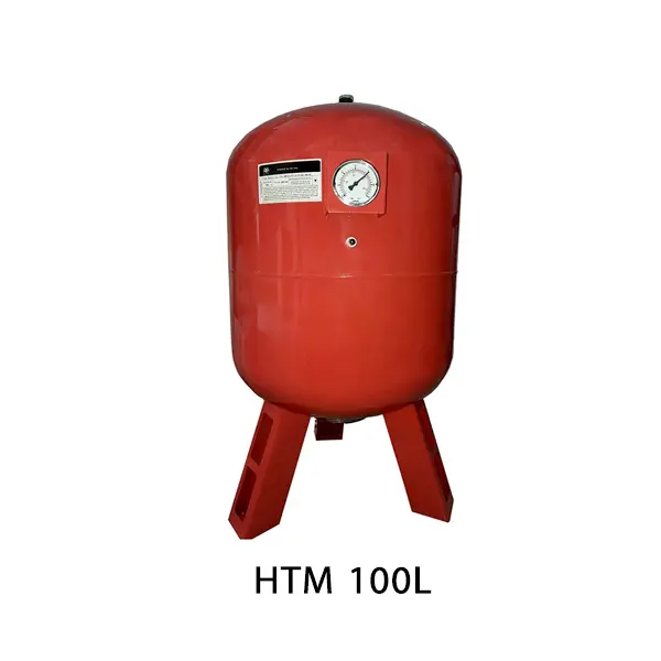 منبع انبساط 100 لیتری HTM با فشار کاری ۱۰ بار و سایز اتصالات ۱ اینچ جهت استفاده در موتورخانه است. این نوع منبع برای کمک به سیستمهای پمپ آبرسانی و افزایش عمر وکارایی آن کاربرد دارد.